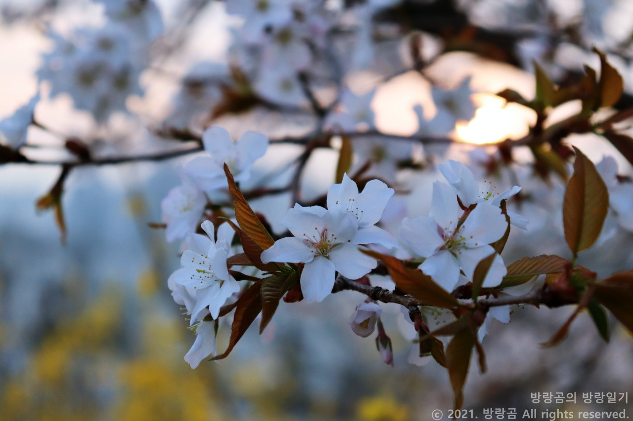 응봉산에서 내려오는 길 역시 개나리로 가득했는데, 벚꽃과 같은 다른 꽃들도 볼 수 있었다. 봄을 맞이하러 찾아갔던 응봉산에서 정말 화려하고 아름다운 봄을 만끽하고 돌아올 수 있었다. 집으로 돌아가는 버스 안에서 짝꿍이 그 동안 못 가봐서 아쉬웠던 감정이 모두 다 사라지고, 내가 왜 지금까지 기다렸는데, 그렇게 본인이 가자고 했는데도 안가고 버텼는지 알 것 같다고 이야기했다. 그리고 지금까지 기다려줘서, 최고의 순간을 보여줘도 고맙다는 말도 덧붙였다.