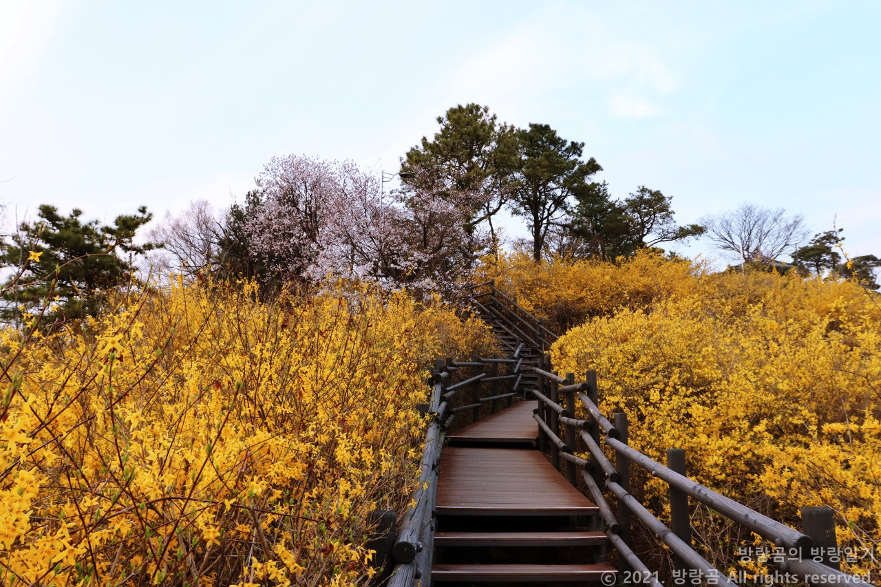짝꿍의 그 서운한 감정은 개나리와 함께 풀어져 버렸다. 응봉산 초입부터 노랗게 물든 개나리의 모습은 정말 아름다웠다. 마음 속에 있는 번민, 화, 앙금 등이 밖으로 표출되지 못하고 자연스럽게 녹아내릴 만큼 개나리는 우리를 반겨주었고, 달래주었다. 가는 길마다 개나리가 우리를 둘러싸고 우리와 눈을 마주치기에 바빴다. 그리고 우리는 개나리와 함께 사진도 많이 찍고, 그들에게 우리의 이야기를 많이 들려주고 내려왔다.