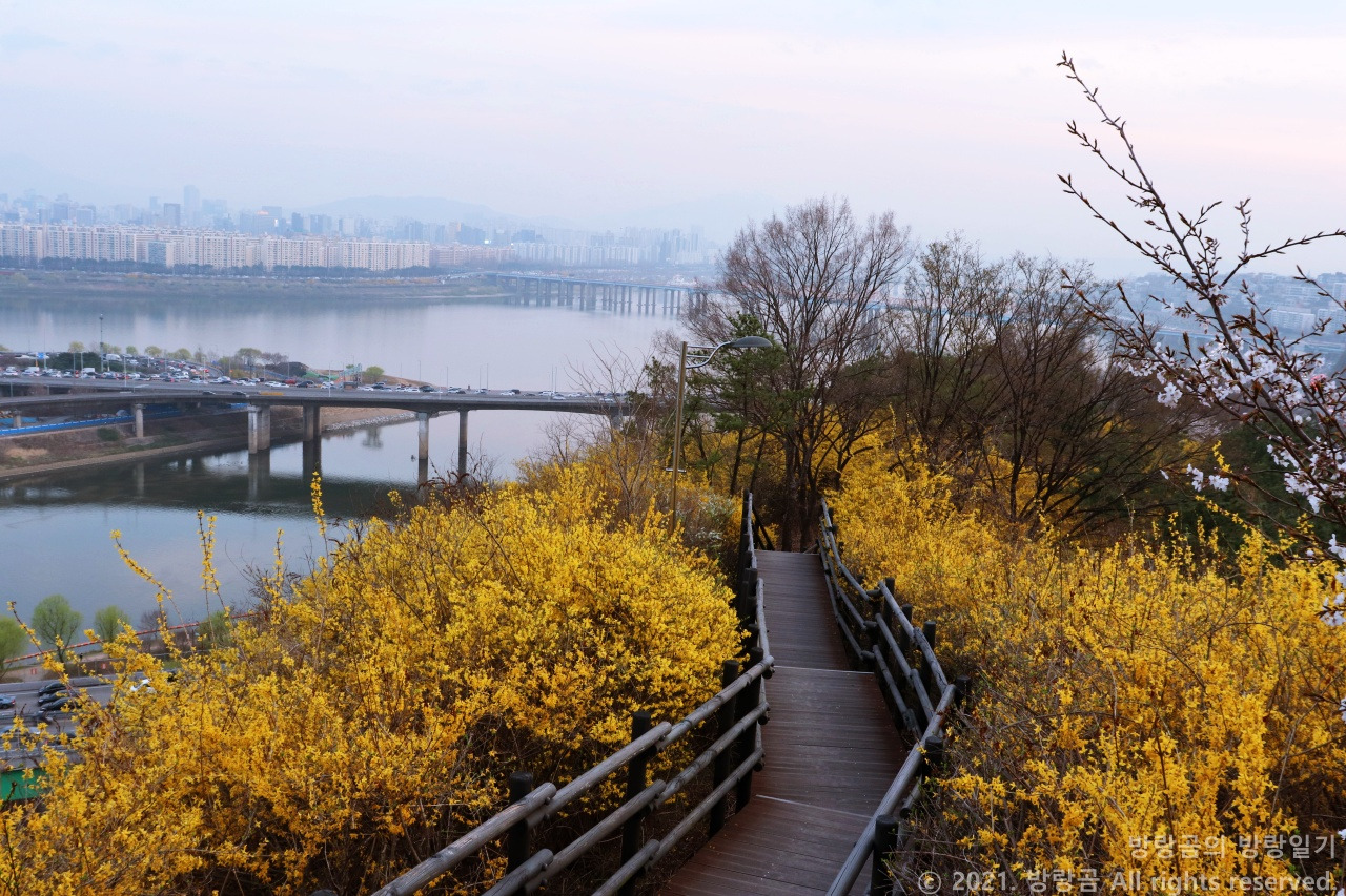 나와 짝꿍은 예전부터 응봉산에 가보자고 꽤 오랫동안 이야기했는데, 정작 단 한 번도 가보지를 않았다. 사실 나는 개나리가 피어나는 이 시기에 가보고 싶어서 아껴뒀던 것이었는데, 짝꿍은 내가 응봉산에 대해 이야기만 할 뿐 정작 가보자고는 하지 않으니까 새삼 서운했나 보다. 나는 나름대로 최고의 순간을 보여주고 싶은 마음이었는데, 그 마음이 잘 전달되지 않았던 것 같다.
