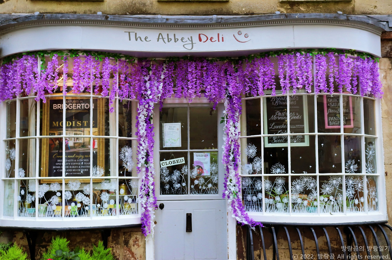 우리는 다시 중심가로 돌아갔다. 돌아가는 길은 우리가 걸어온 길이 아니라 새로운 길을 선택했다. 조금이라도 새로운 모습을 보고 싶었기 때문인데, 그 길에서 예상하지 못했던 장소를 만나게 되었다. 작은 상점이었는데 보라색 꽃으로 화려하게 장식된 창문이 눈길을 사로잡았다. 멀리서 보기에도 특별한 장소라는 생각이 들었는데, 짝꿍은 보자마자 이 장소를 바로 알아봤다. 바로 넷플릭스에서 방영하는 영국 드라마, 브리저튼(Bridgerton)의 배경이었다. 나는 이 드라마를 보지 않아서 몰라봤지만, 이 상점 앞에서 사진을 찍고 가는 사람들이 꽤 많았다. 사실 이 장소의 의미를 모른다고 하더라도 그냥 지나치기에는 너무 예쁘고 아기자기한 장소였다. 사진을 찍고 있는 사람들이 끝나길 기다리면서 짝꿍은 이 장소가 어떤 장면에서 나오는지 나에게 설명해줬다. 약간의 시간이 지나고 짝꿍은 보라색 꽃 장식 아래에서 예쁜 사진을 찍었다. 상점이 문을 열어서 내부까지 볼 수 있었다면 좋았겠지만, 외부 모습만으로도 짝꿍은 충분히 만족스러워했다.