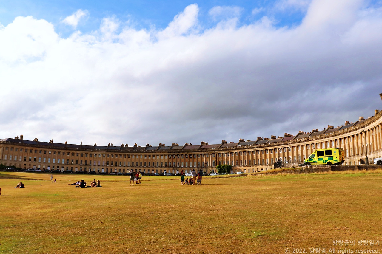 이곳은 초승달 모양의 건물이 커다란 잔디밭을 감싸고 있는 형태로 독특한 모습을 보이고 있다. 잔디밭 위에서 건물을 바라보면 건물이 나를 감싸고 있는 듯한 느낌이 들고, 그로 인해 다소 포근한 느낌이 드는 공간이다. 독특한 형태의 건물을 볼 수 있고, 그 앞에 있는 거대한 잔디밭에 앉아서 휴식을 취할 수도 있는 이 공간에는 다양한 목적으로 다양한 사람들이 찾아온다. 그들은 이곳을 둘러보러 오는 여행객일 수도 있고, 잔디밭에 앉아서 쉬기 위해 오는 바스 시민일 수도 있다. 또는 친구들끼리 피크닉을 즐기러 찾아오는 학생들일 수도 있다. 우리는 바스 시민인 척 하는 여행객이었다. 이곳을 둘러보기 위해 찾아간 여행객인데, 이 장소가 주는 분위기와 기운이 너무 좋아서 자연스럽게 잔디밭에 앉게 되었다. 이러한 이유로 이 장소는 내가 바스를 여행할 때마다 찾아온 장소이다. 아직 바스의 모든 장소를 다 봤다고 말할 수는 없지만, 지금까지 바스에서 내가 가장 애정하는 장소도 바로 여기이다.