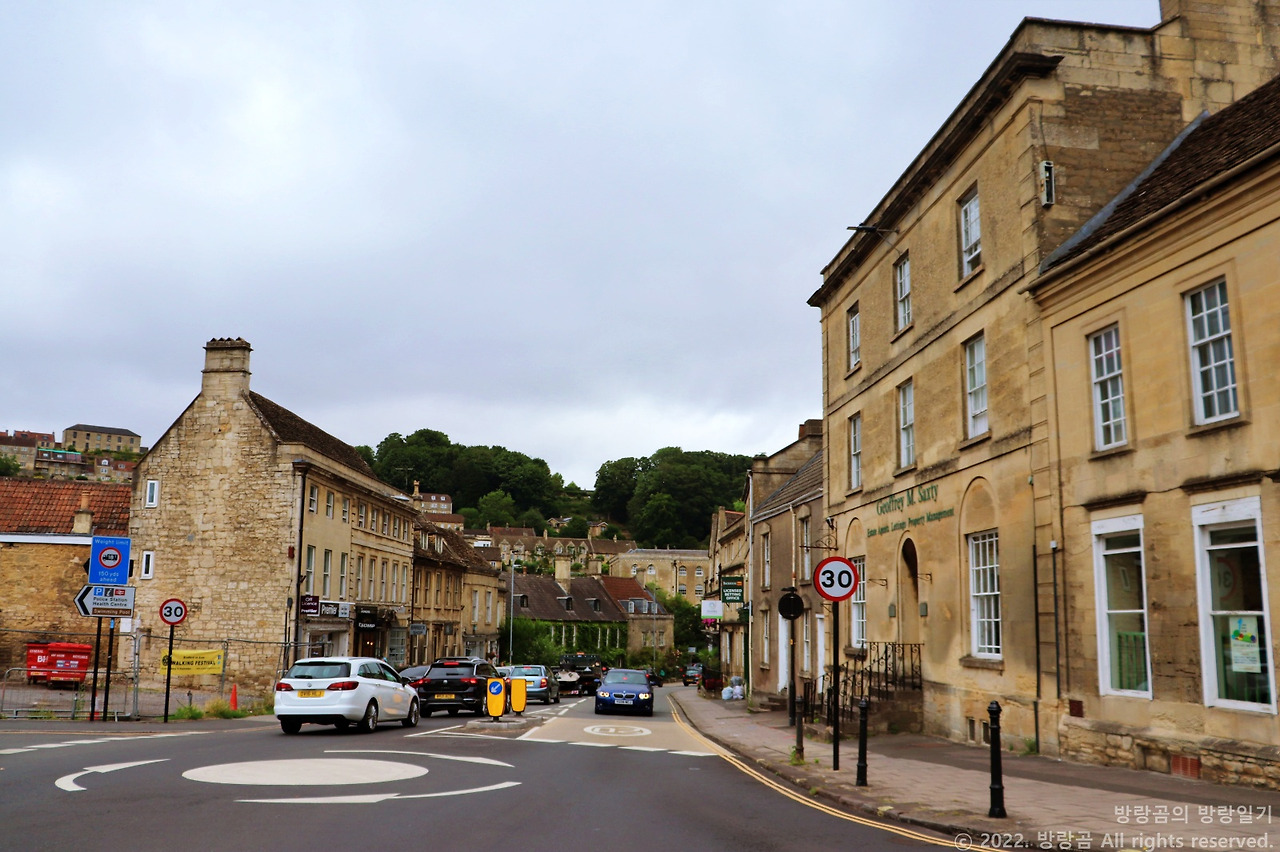 조용하긴 했지만, 마을 중심가는 영국 고유의 분위기가 물씬 느껴졌다. 우리는 중심가를 지나 마을을 한 바퀴 돌 요량으로 길을 따라 계속 걸었다. 우리가 향한 곳은 기차역 근처에서 봤던 언덕 위 마을이었다. 브래드포드 온 에이본 기차역이 있는 지역은 지대가 조금 낮고, 에이본 강을 건너서 조금 더 가다 보면 비교적 고지대가 나온다. 고지대라고 해도 언덕을 5분 정도만 올라가면 될 정도긴 하지만, 그래도 이곳에서는 마을의 모습이 파노라마로 펼쳐진다. 우리는 언덕을 오르고 중후한 멋이 가득한 골목을 지나 마을이 보이는 내려다 보이는 장소에 도착했다. 이곳에서 바라본 마을은 너무 아늑하면서도 평화로운 분위기가 가득했다. 세월을 한껏 머금은 주택들이 넓게 퍼져있고 그 사이사이 보이는 나무들이 싱그러움을 더해주고 있었다. 나무 사이사이 자리한 집들이 마치 동화 속에 나오는 마을 같았다.