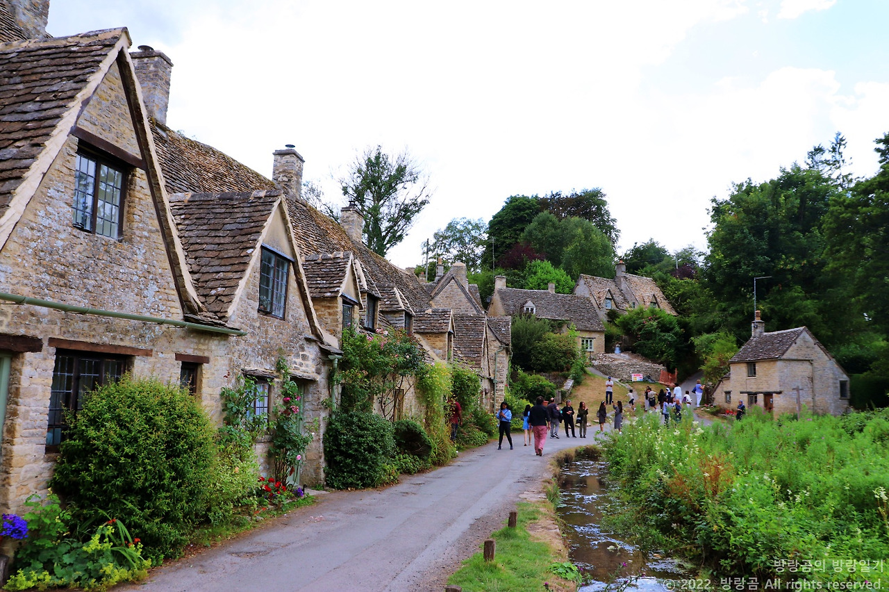 알링턴로는 영국의 전통 가옥이 일렬로 길게 이어져 있는 형태로 자연 속에 포근하게 자리잡고 있다. 이곳의 모습은 영국 여권 내부표지를 장식할 정도로 코츠월드를 넘어 영국에서 가장 영국스러우면서 그림같은 곳으로 손꼽히는 장소이다. 14세기 후반에 지어진 이 건물에는 여전히 사람들이 살고 있는 듯했고, 주변의 녹색 가늑한 풍경과 조화를 이루고 있는 모습이 너무 아름다웠다. 왜 많은 사람들이 이곳을 이렇게 찾아오고, 영국에서 가장 그림같은 곳이라고 평가하는지 충분히 이해되는 모습이다. 우리는 멀리서 전경을 감상한 후에 알링턴로 구역으로 들어섰다. 그곳에는 영국의 전통적인 시골 가옥 형태의 건물이 길게 이어져 있었고, 그 앞으로는 보기만 해도 상쾌한 녹색 공간이 펼쳐져 있었다. 영국의 전통 건축물은 다소 칙칙한 색깔인데, 그 앞에 잘 관리된 덤불이나 활짝 피어난 꽃들이 그 칙칙함을 상쇄시킨다. 오히려 꽃과 나무가 건물 사이사이에 두드러져서 전체 느낌은 더 밝고 화사했다.