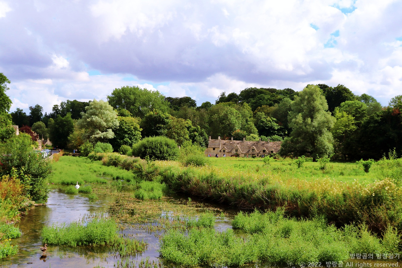 우리는 알링턴로 건물 앞을 천천히 가로질렀다. 다른 여행객들처럼 우리도 건물을 유심히 들여다보기도 하고 주변 모습을 감상하기도 했다. 이렇게 천천히 앞으로 나아갔음에도 알링턴로 끝자락에 다다르는 데까지 채 10분도 걸리지 않았다. 평상 속도로 걸으면 고작 1분만에 알링턴로를 모두 지나갈 수 있을 정도로 규모가 작다. 하지만 이 짧은 길을 보고 걷기 위해 매년 수많은 관광객이 이곳을 찾는 것을 보면 규모로 이곳을 평가할 수는 없을 것이다. 오히려 작은 규모가 이곳의 아기자기한 매력과 이 건물이 자연 속에 포옥 파묻혀 있는 듯한 포근한 느낌을 한껏 끌어올린다. 이렇게 짧은 길을 지나는 데 나와 짝꿍은 몇 번이나 멈춰섰다. 거의 모든 집을 하나하나씩 바라봤고, 그 앞에 펼쳐져 있는 푸른 녹지를 편안하게 감상했다. 아직 바이버리 마을의 다른 곳을 가보지는 않았지만, 알링턴로를 지나간 것만으로도 이곳까지 온 수고와 노력을 보상받는 듯했다. 그래서 알링턴로 이후에 우리의 발길이 닿은 곳은 이 마을이 우리에게 주는 보너스 선물처럼 느껴졌다. 우리는 그저 감사하게 그 선물을 받았다.